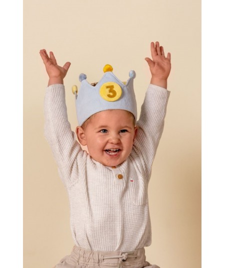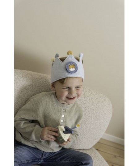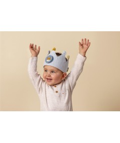 La corona cierra mediante velcro, lo que permite que la corona se adapte a la cabeza del niño o niña.