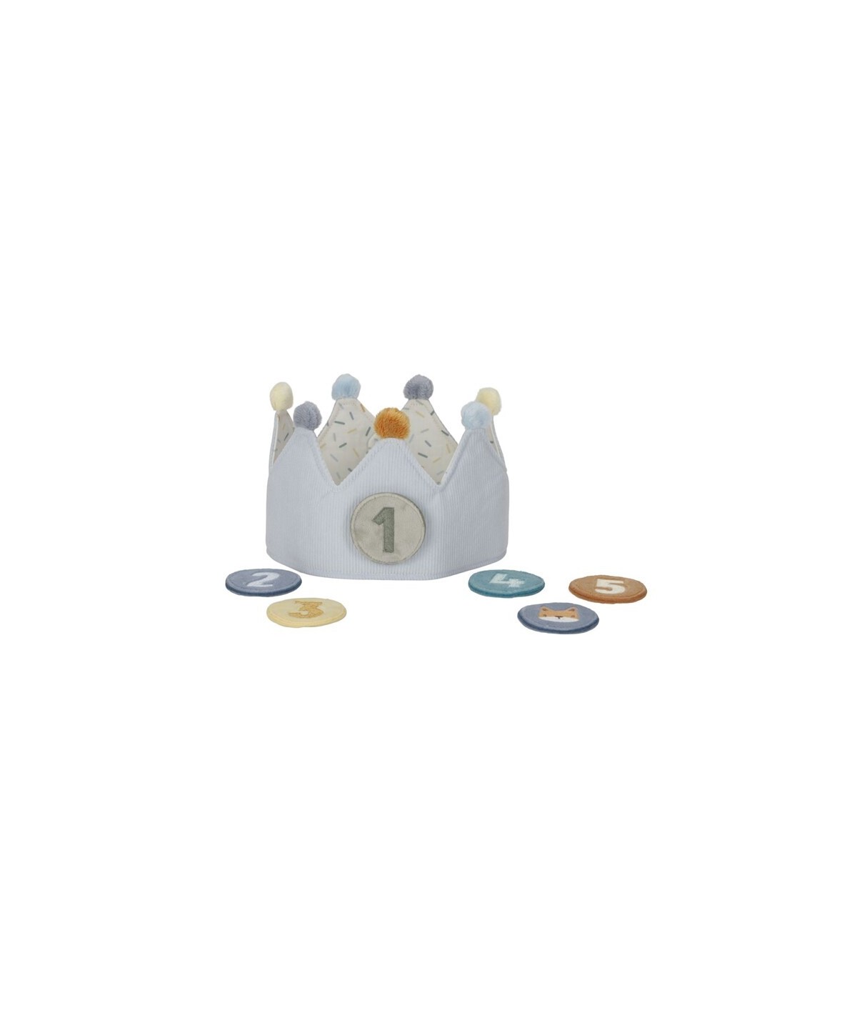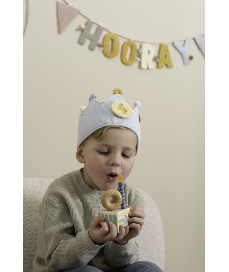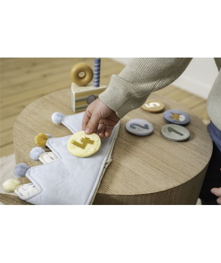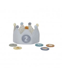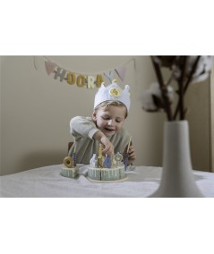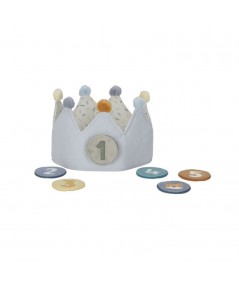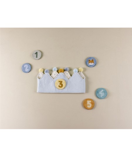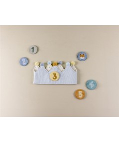 Bonita corona de cumpleaños, confeccionada en tela de algodón, y con números intercambiables del 1 al 5. De Little Dutch.