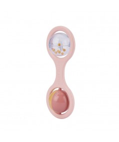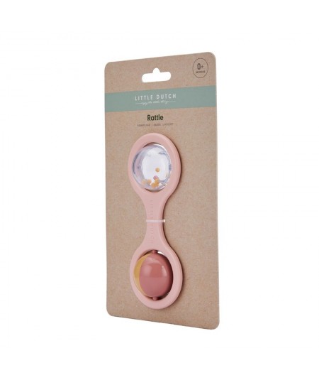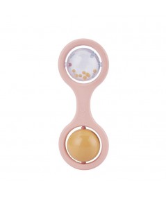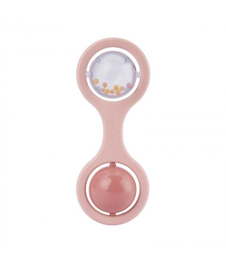 Sonajero clásico, de fácil agarre, perfecto para agitar el sonajero y escuchar las bolitas moverse, además de hacer girar la pelota giratoria. De Little Dutch.