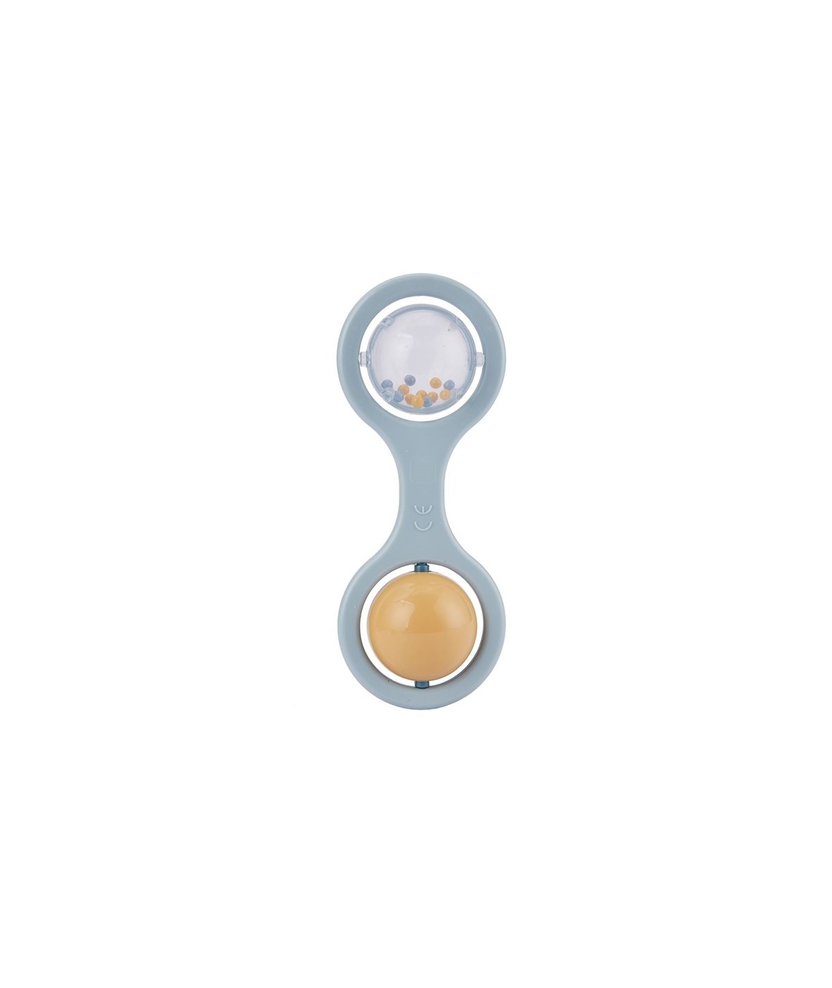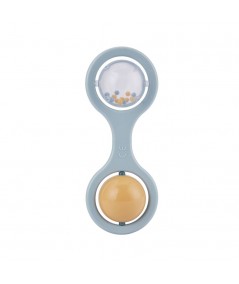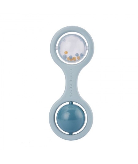 Sonajero clásico, de fácil agarre, perfecto para agitar el sonajero y escuchar las bolitas moverse, además de hacer girar la pelota giratoria. De Little Dutch.