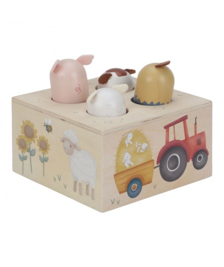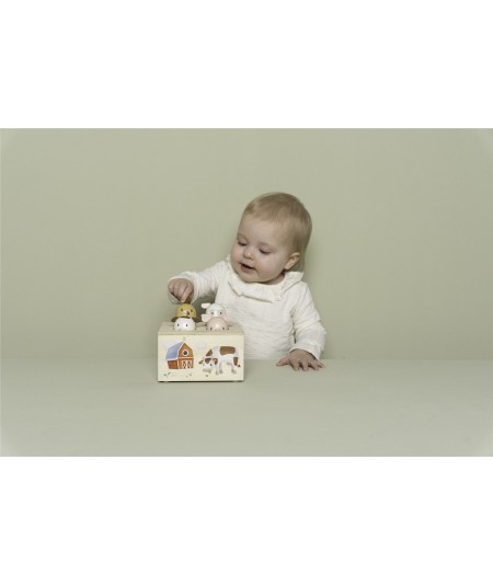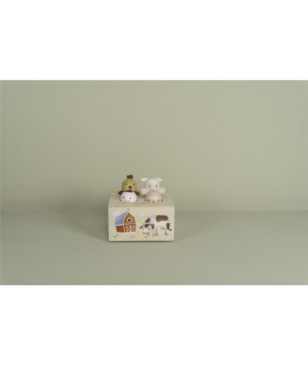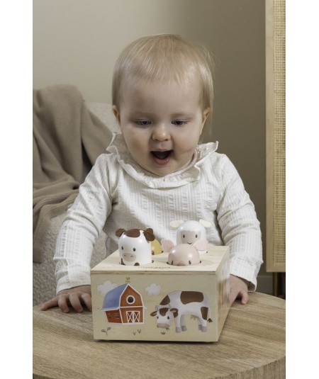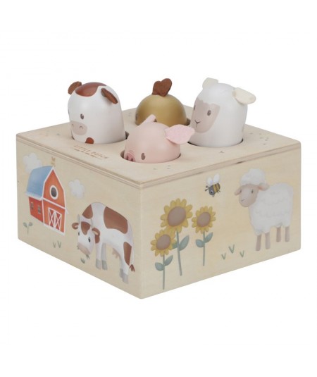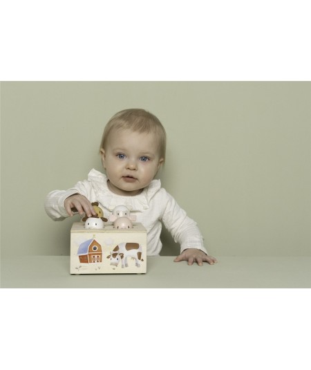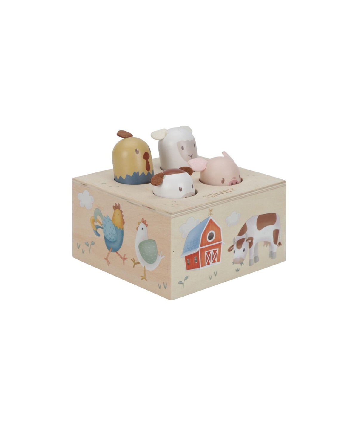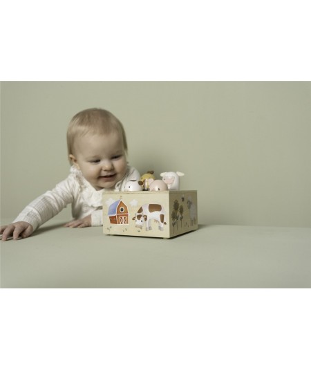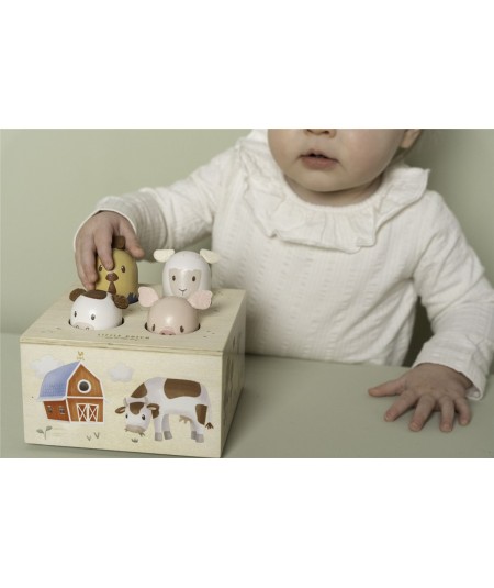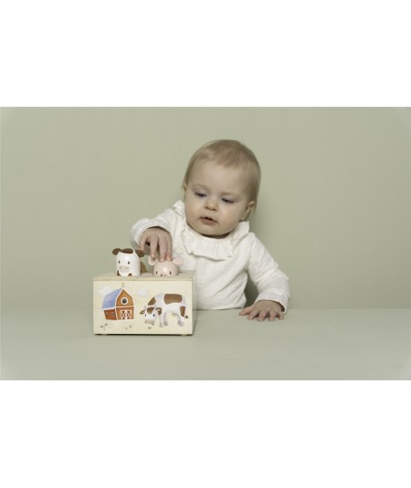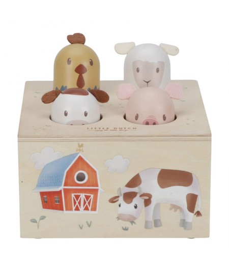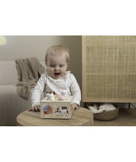 Caja de madera Pop-up con animales y sonidos de la colección "Pequeña Granja". De Little Dutch.