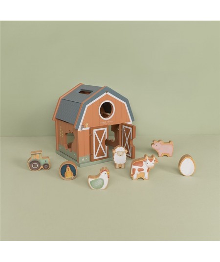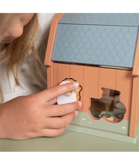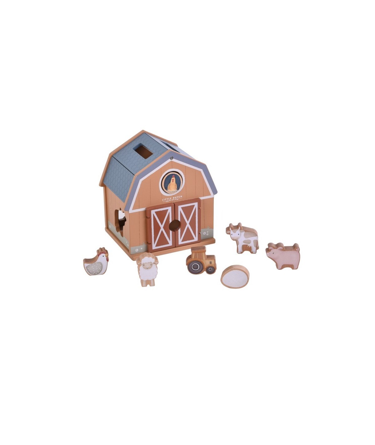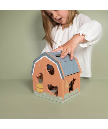 Caja de madera con forma de granja, perfecta para encajar las figuras, de la colección "Pequeña Granja". De Little Dutch.
