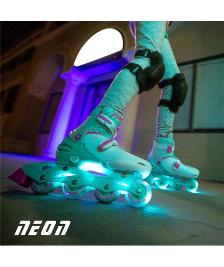 ¡Los patines combo neón te brindan horas de diversión y brillan donde quiera que vayas con las ruedas iluminadas!.