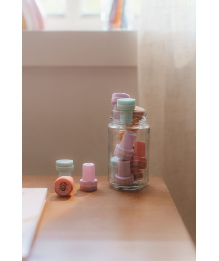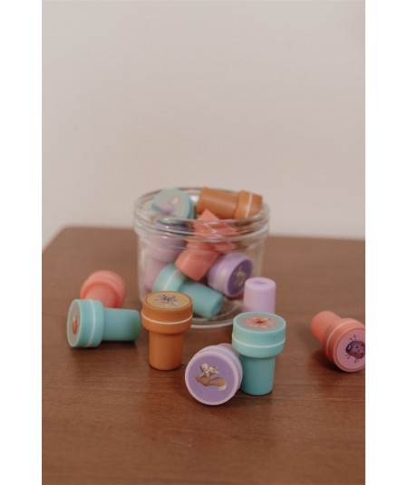 Set de 16 sellos autoentintados, con ilustraciones. De Little Dutch.