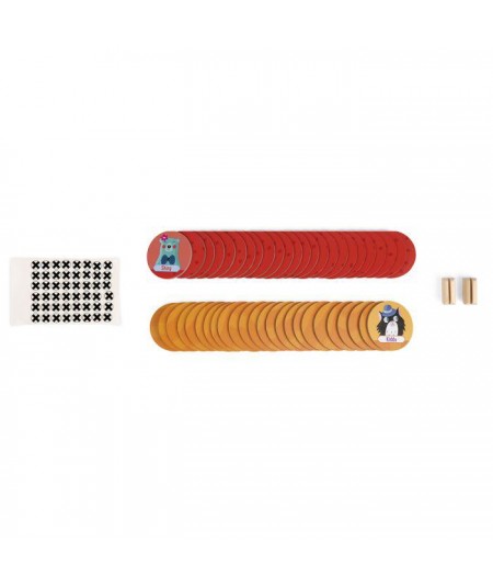 Contiene: Tablero reversible, 48 cartas, 2 soportes de madera y 48 adhesivos reutilizables.