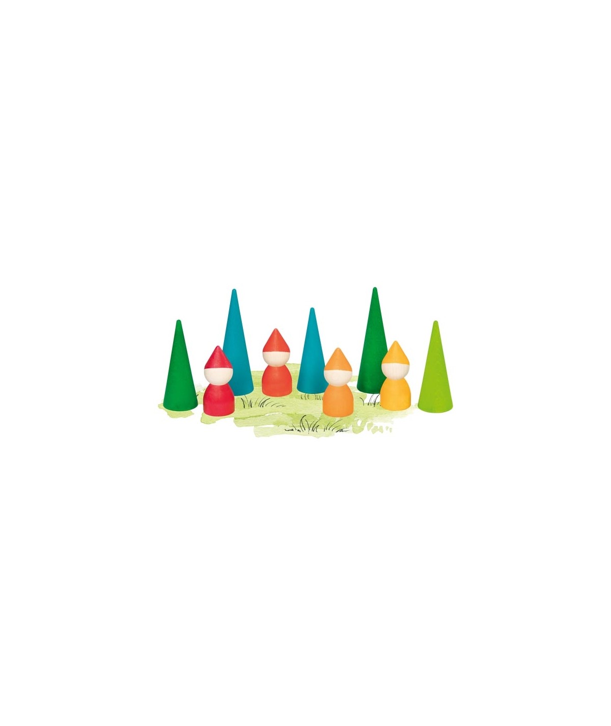 Ofrece un mundo lleno de posibilidades para que los pequeños aventureros jueguen con estos dos amigos de madera del bosque de los enanitos: ¿una visita a la casa de los enanitos, o quizás al final del arco iris?