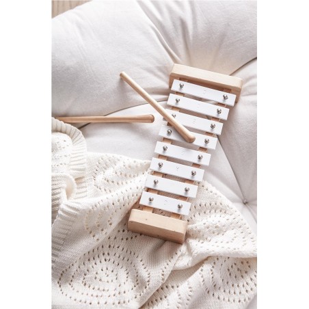 Xilófono de Kids Concept fabricado en madera y metal lacado en color blanco.