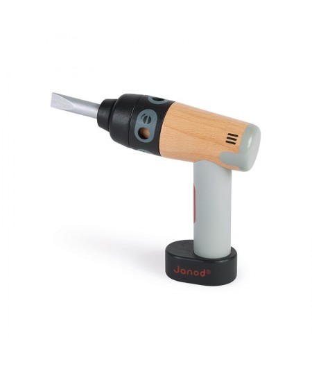 Taladro de madera con brocas intercambiables imantadas para jugar a taladoras y a atornillar/destornillar imitando a mamá y papá.