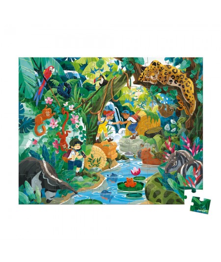 Puzzle de 100 piezas de cartón resistente para explorar la junta en busca de un tempo inca. De Janod.