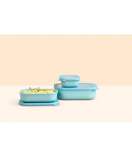 La tapa innovadora y flexible es hermética y a prueba de guas. Mantiene los alimentos frescos durante más tiempo y permite que se almacenen y se lleven perfectamente.