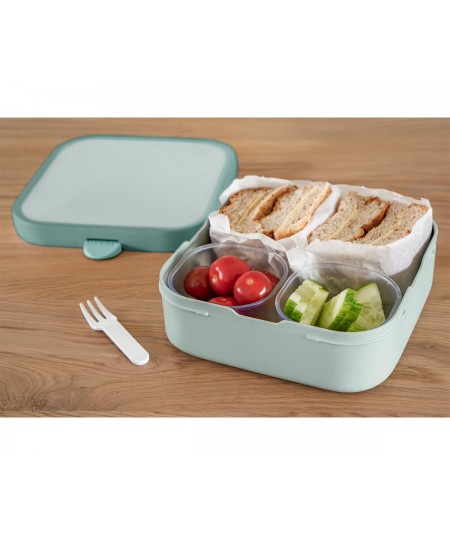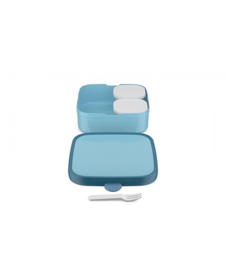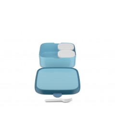 Caja Bento campus grande, mantiene los diferentes alimentos separados gracias a dos cajas bento extraíbles con tapa que contiene, a prueba de fugas. El tenedor cabe dentro de la caja.