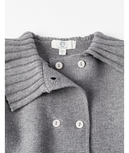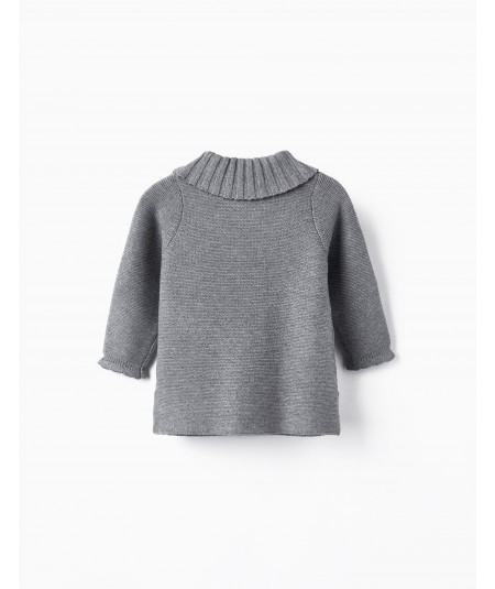 Chaqueta de punto gris para bebé niña, con cierre delantero mediante botones.