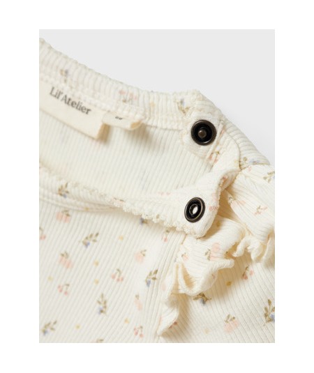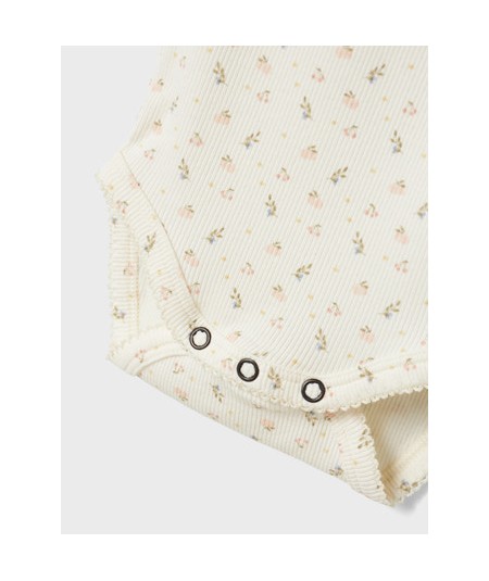 Body exterior para bebé niña, con fino estampado de flores, confeccionado en suave y ligero algodón. De lil'Atelier.