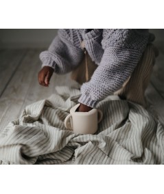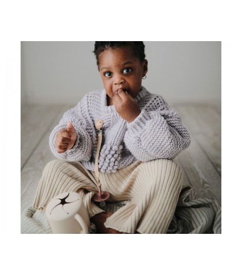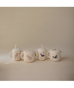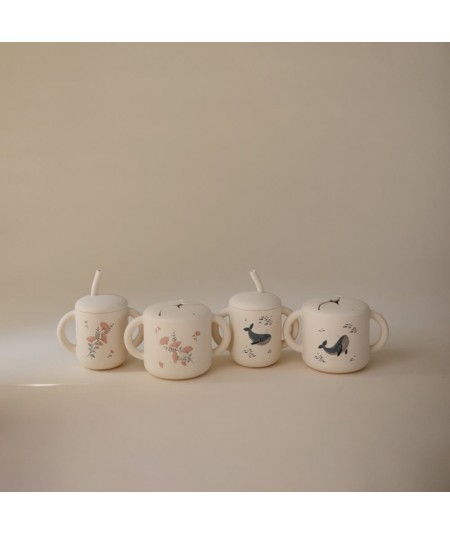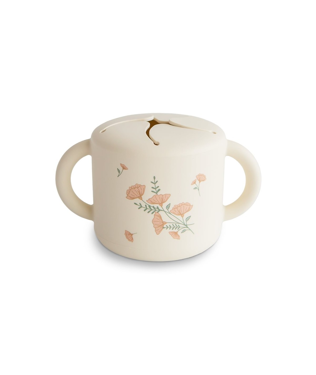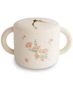 Taza de silicona o dispensador de snack a prueba de derrames. De Mushie.