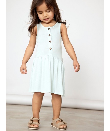 Vestido liso sin mangas para niña, con abertura delantera mediante botones de madera. De Name it.