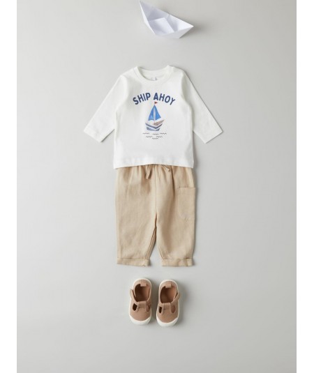 Camiseta manga larga para bebé niño, con serigrafía velero, confeccionada en tejido de algodón orgánico.