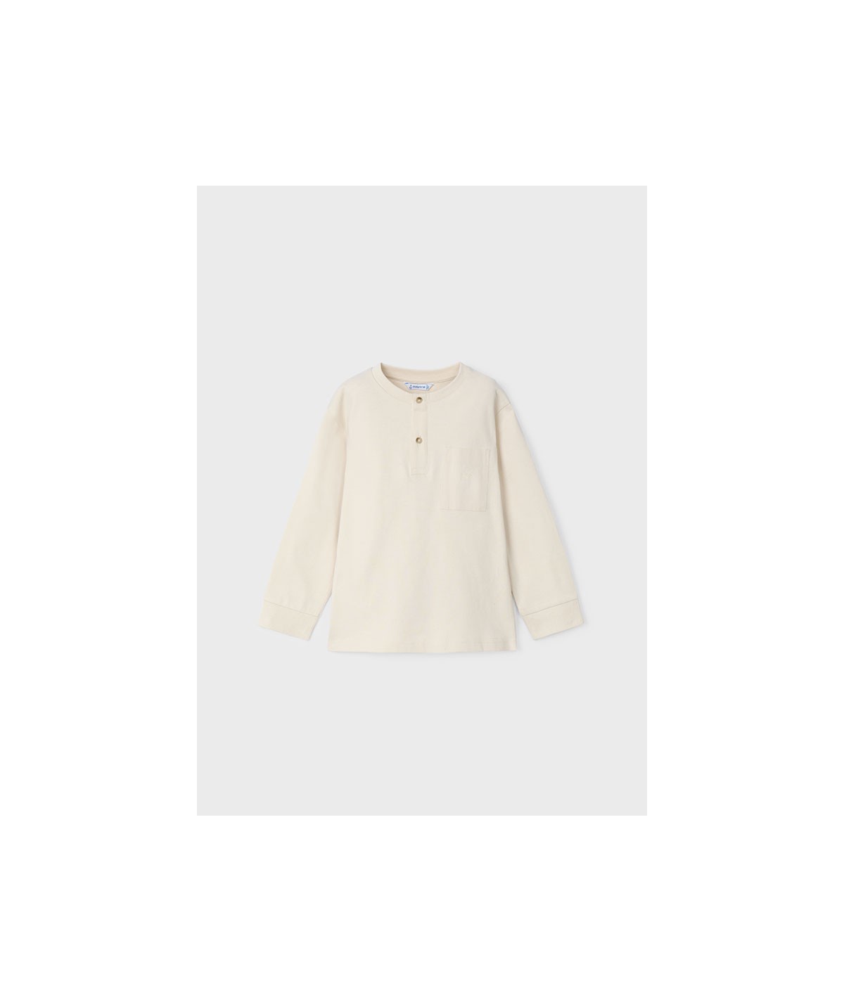 Camiseta manga larga para niño, con cuello panadero y botones delanteros. De Mayoral.