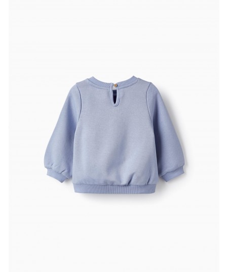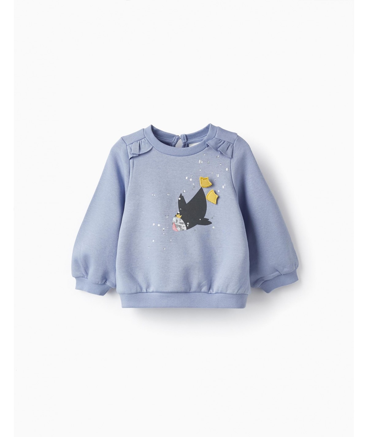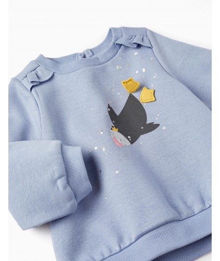 Sudadera azul para bebé niña con estampado frontal de pingüino, y confeccionada en mezcla de algodón.