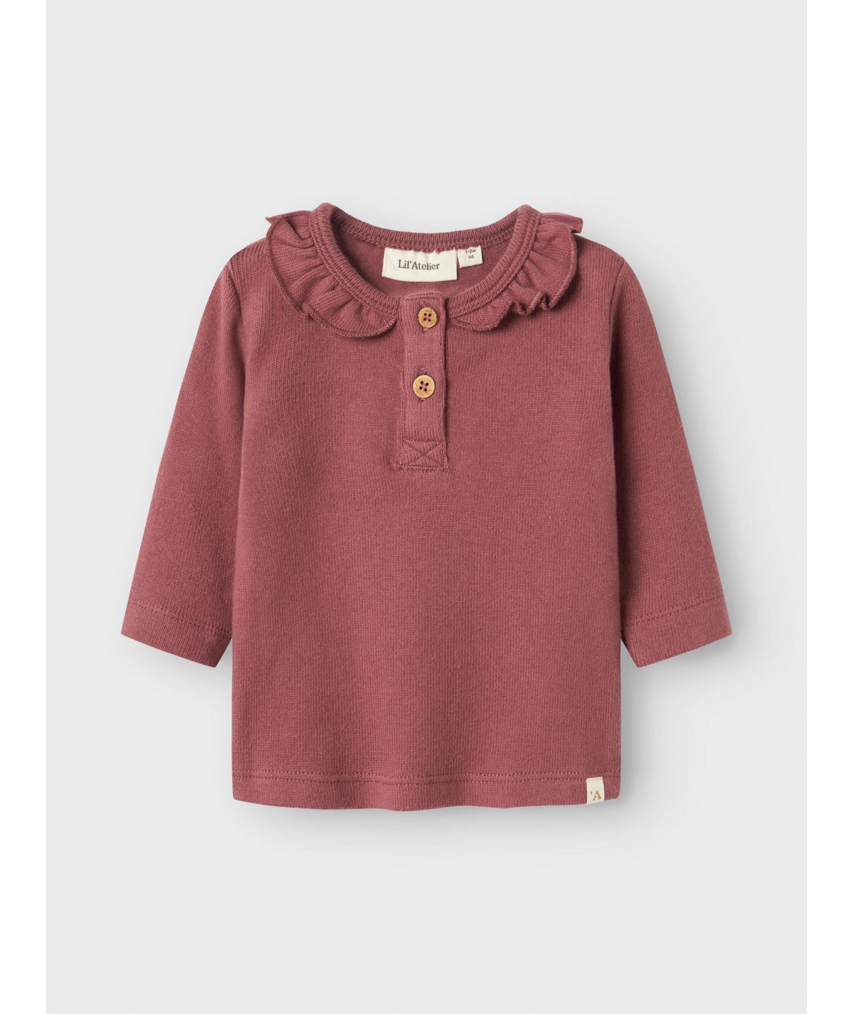 JERSEY CON VOLANTE EN CUELLO BURDEOS BEBÉ NIÑA - LIL'ATELIER