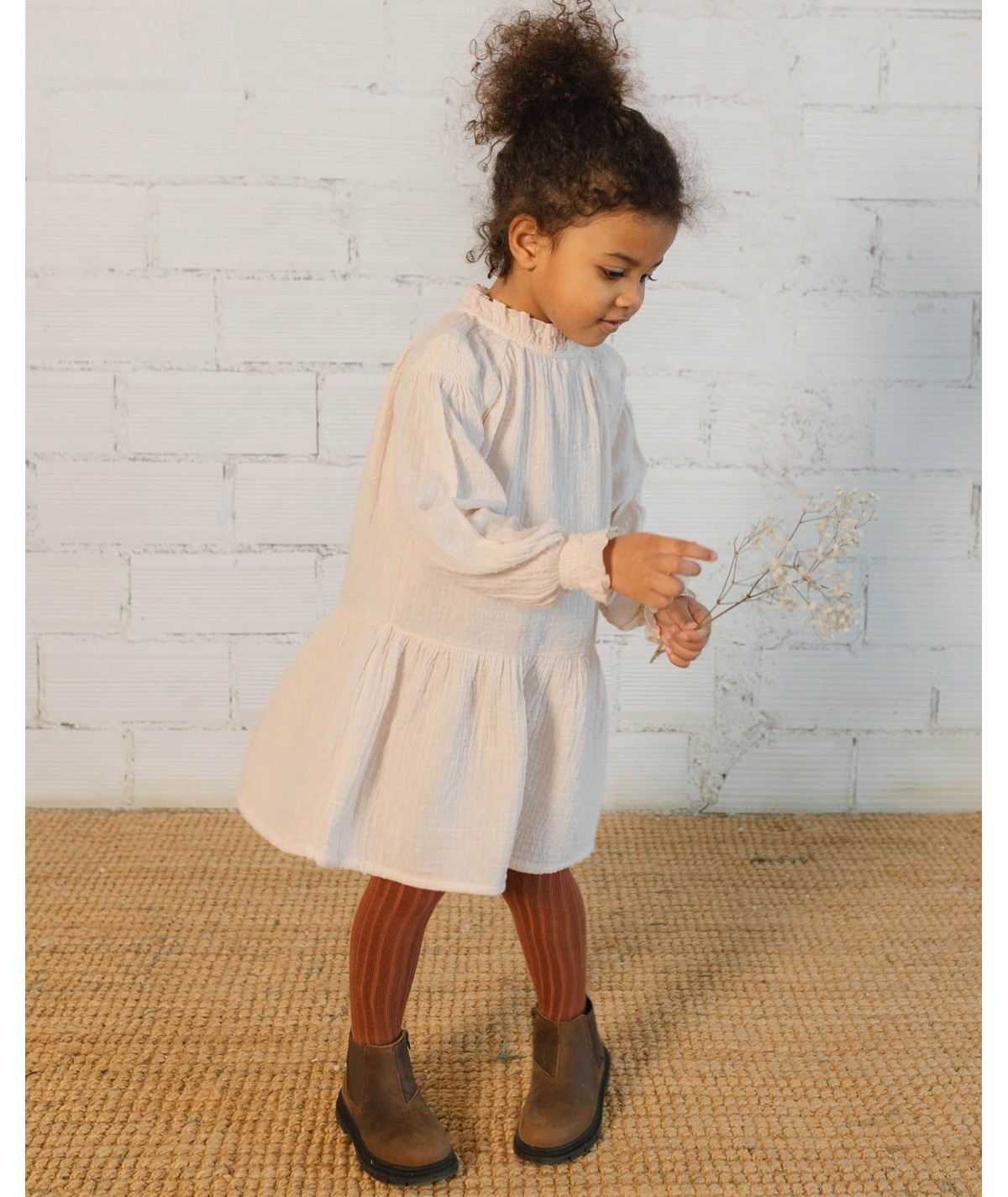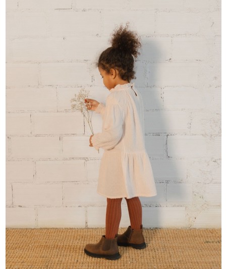 Vestido manga larga para niña, confeccionado tejido de plumeti. De Búho Barcelona.