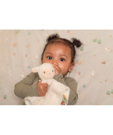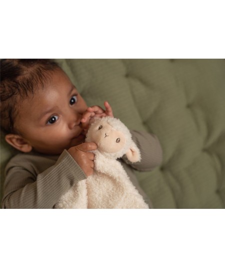 Doudo o trapito de Oveja, de la colección pequeña granja, perfecto para acompañar al bebé. De Little Dutch.