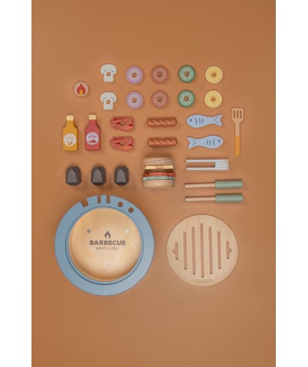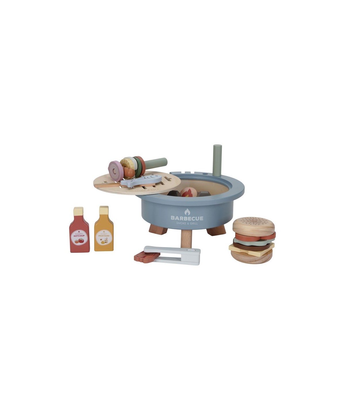 Barbacoa de madera, con 24 piezas dónde tendrás todas las herramientas a mano para imitar la alegría de una auténtica barbacoa. De Little Dutch.