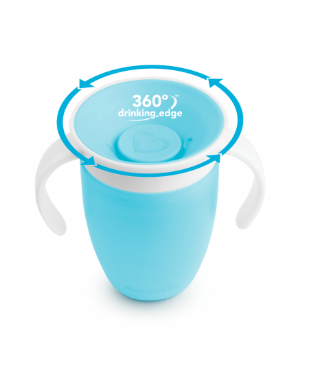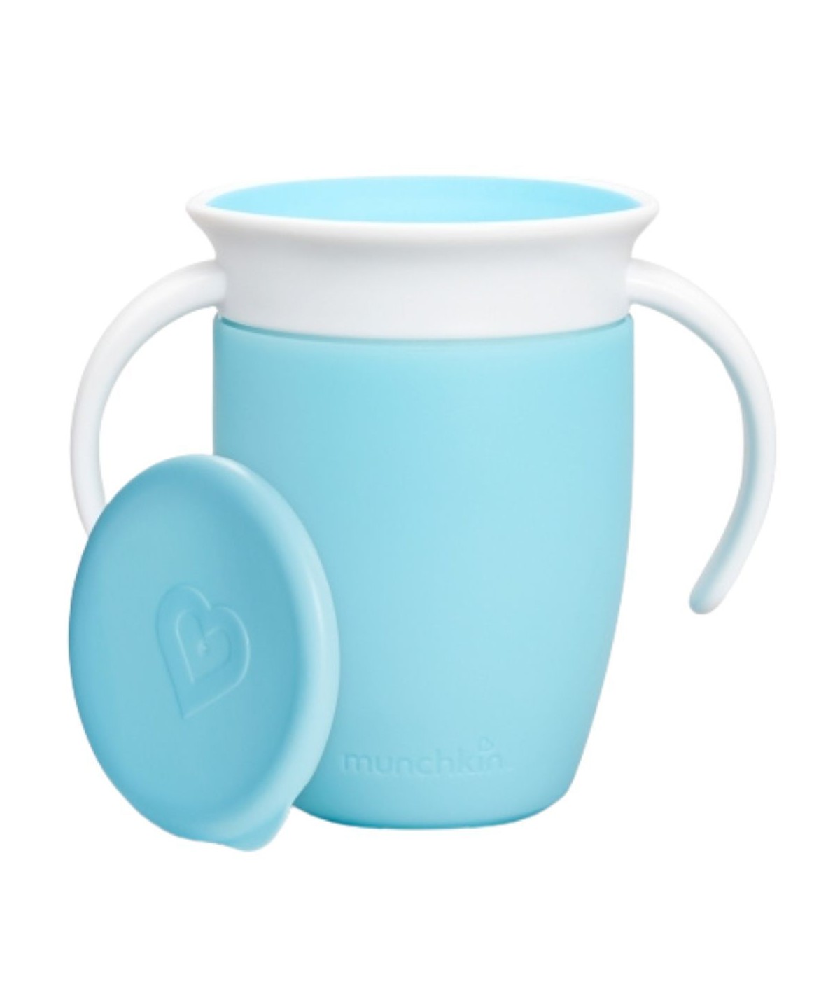 El vaso con asas y tapa antiderrames, o antigoteo Miracle® 360° con capacidad de 200 ml. De Munchkin.