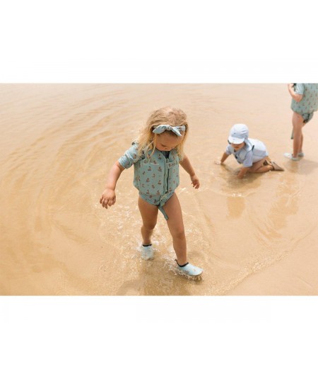 Chaleco de la colección Crabs Coral de Monnëka by Tutete, dispone de una cinta con cierre de seguridad para colocar entre las piernas con el fin de que el chaleco no se salga por la cabeza, en caso de tirarse al agua de manera vertical o cuando, simplemente, está flotando en el agua.